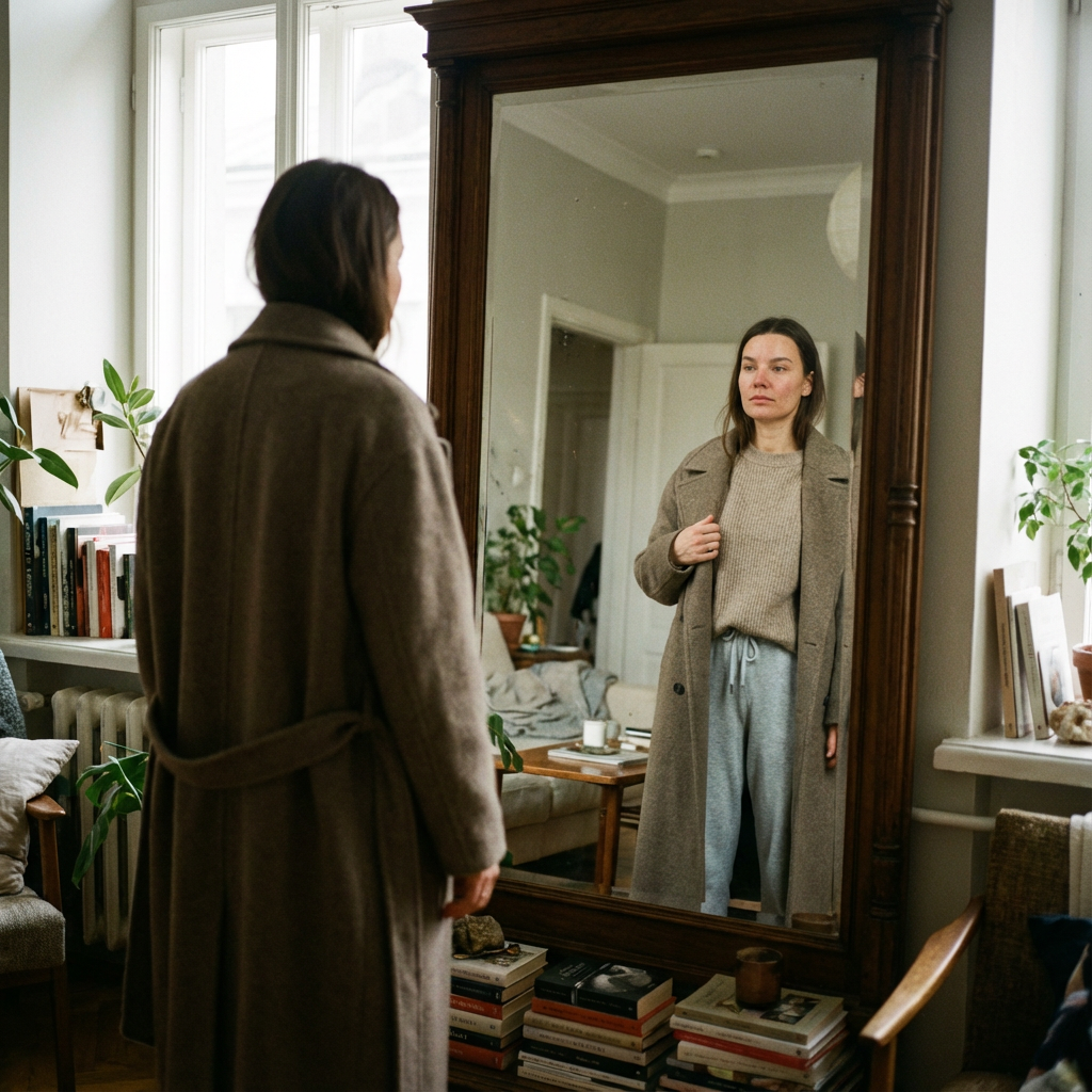 - Fason "Collarless" (Bez kołnierza): Brak stójki i kaptura sprawia, że szyja wygląda smuklej, a stylizacja nabiera lekkości. To idealne tło dla Twoich dodatków.